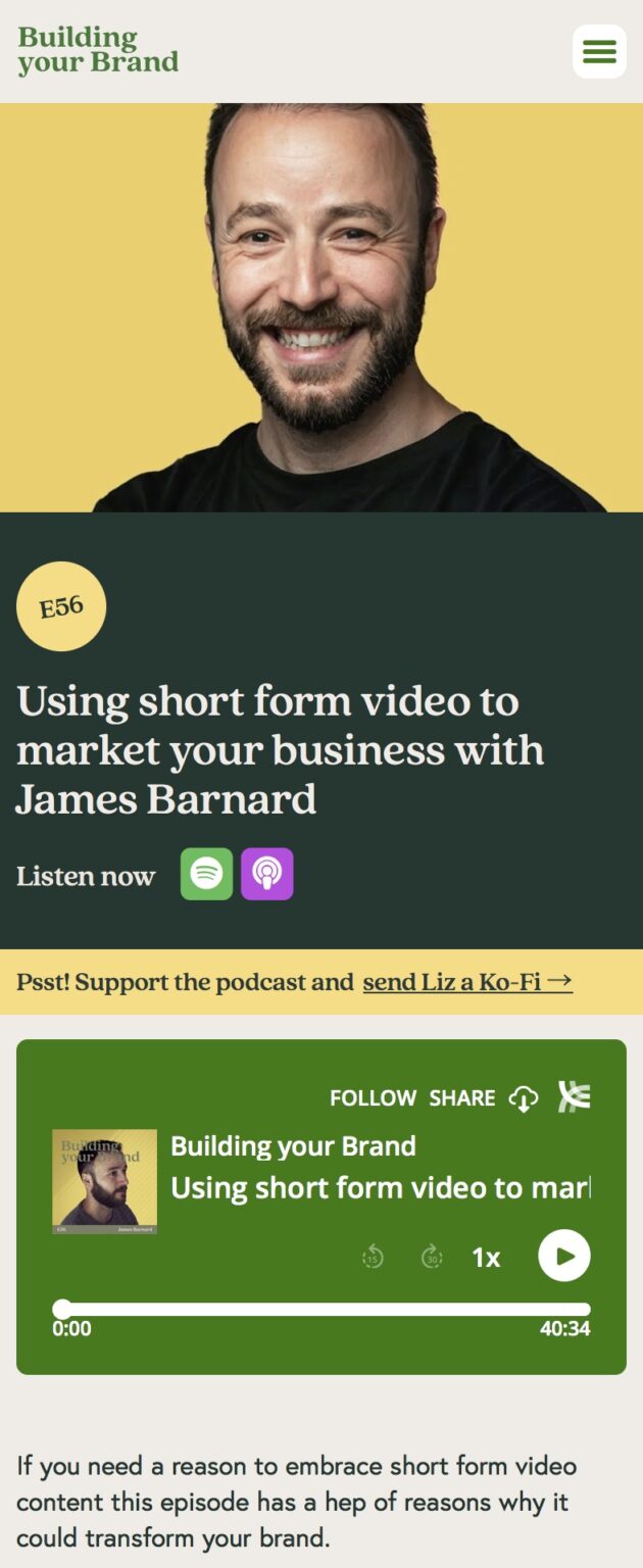 Liz pretty much gave us free rein (aside from the aesthetics and design elements) so that we could apply all of our expertise from business websites, with some extra exciting features just for podcast websites.
